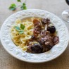 Ingrédients : Confit de canard 45%, sauce cuisinée au vin, carottes, pruneaux, oignons, ail, Armagnac 1%, amidon, sel, poivre.